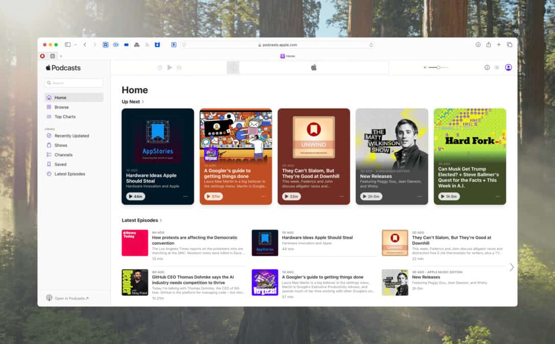 Apple Podcasts got the full Apple Music treatment with its own web app today. The UI is essentially the same...